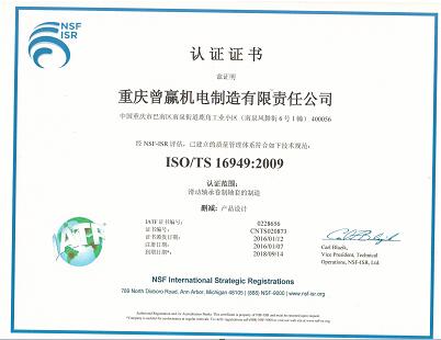 重慶曾贏機(jī)電制造有限責(zé)任公司ISO/TS16949:2009